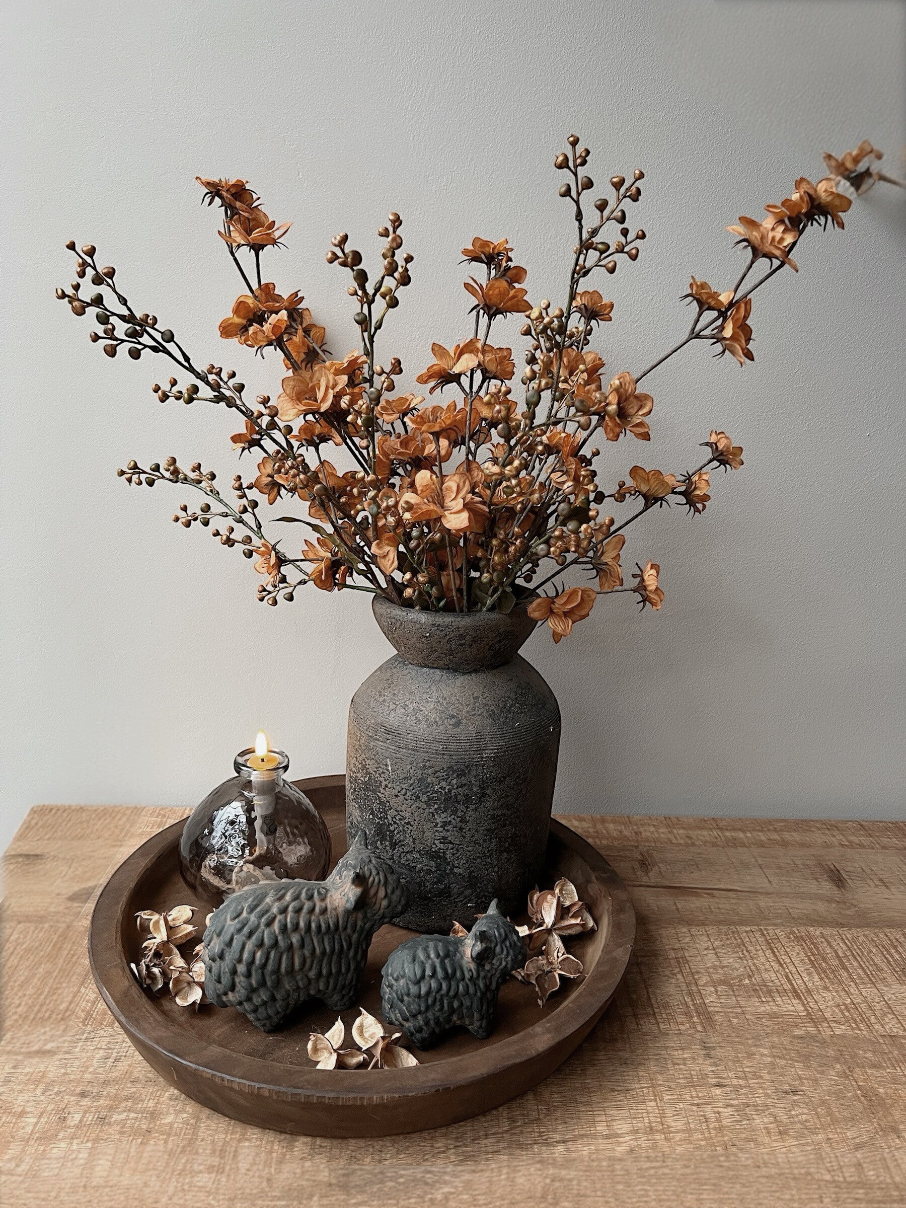 Staat erg gezellig op een kast, dressoir, vensterbank of tafel.