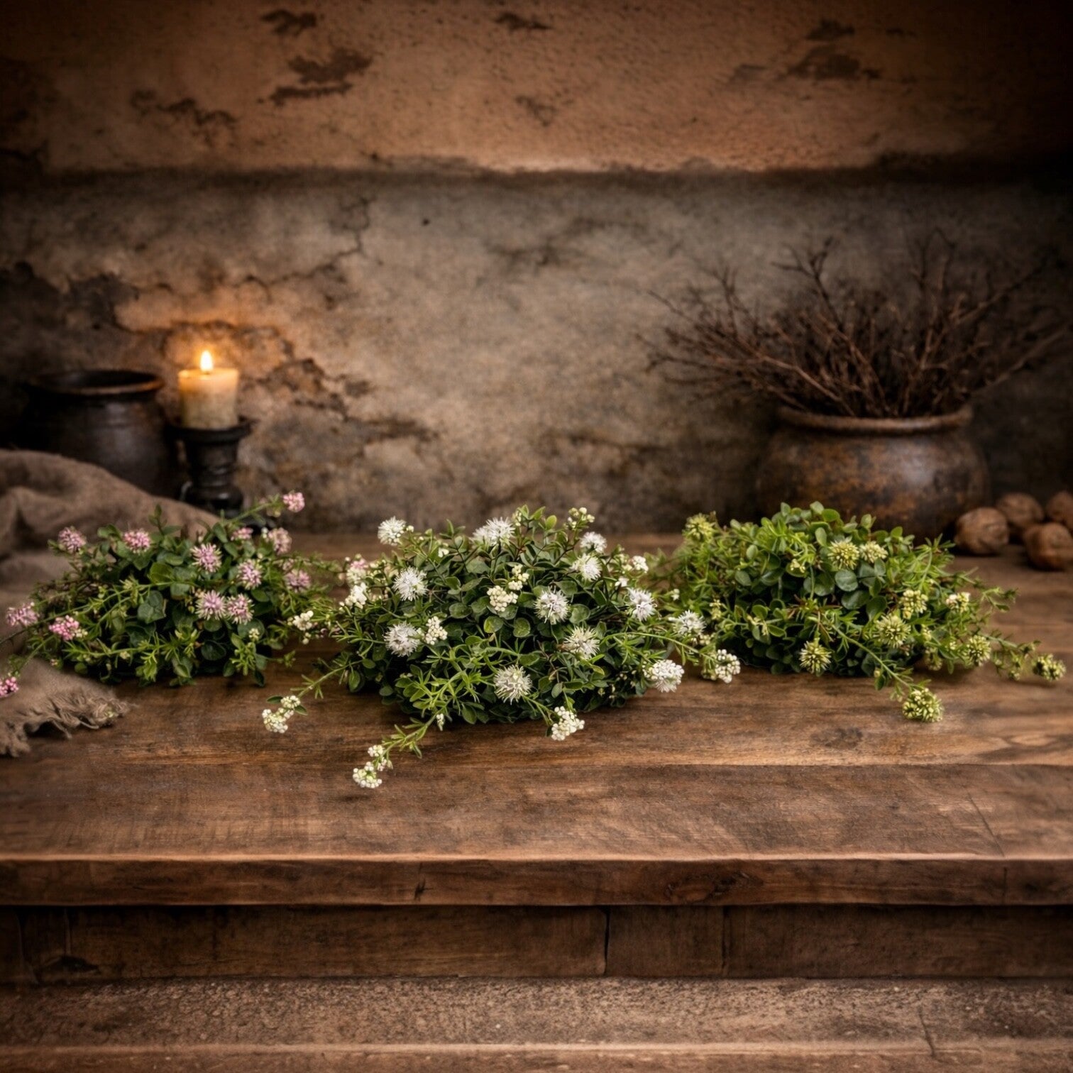 Decoratieve halve kunst bollen met een stoere, landelijke uitstraling.